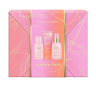 Delight your senses or treat a loved one to a beautifully gift wrapped set including 100ml bath bubbles, 100ml body spritz and 50ml body lotion.