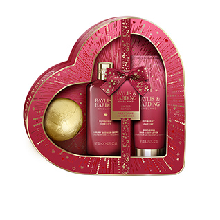 Elegant heart-shaped gift set that combines beauty and sophistication containing 300ml shower crème, 200ml hand & body lotion and a 140g bath bomb