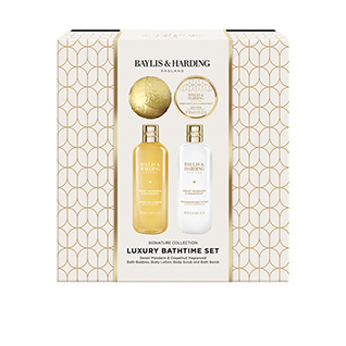 Bath times have never felt or smelt better with this luxury bathing gift set containing 250ml bath bubbles, 250ml body lotion, 120g bath bomb and 100ml body scrub.