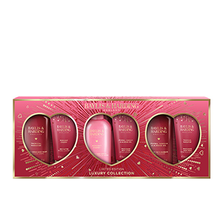 Luxurious collection of self-care items containing assorted fragrances 300ml bath bubbles, 300ml body crème body wash, 250ml body spritz, 130ml body butter, 130ml body lotion and 130ml hand cream.
