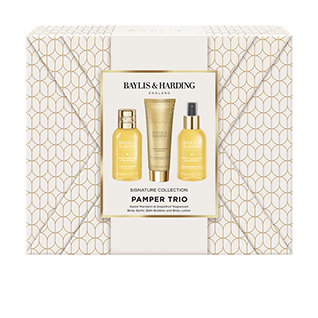 Delight your senses or treat a loved one to a beautifully gift wrapped set including 100ml bath bubbles, 100ml body spritz and 50ml body lotion.